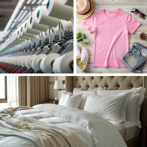 🏡 Home Textiles – Flat Sheets, Fitted Sheets, Pillow Covers, Duvets, Shams, Comfort Shells, Bed Skirts, Hospital & Hotel Linens.